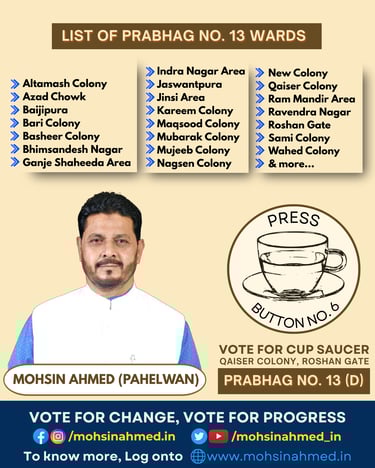 Mohsin Ahmed (Pahelwan) is contesting Municipal Corporation 2026 Elections from Prabhag no. 13 (D) as an Independent Candidate and his symbol is Cup Saucer.