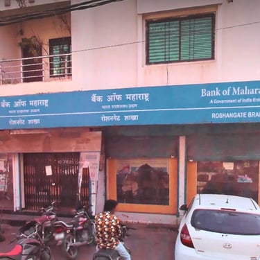 A Centralised Bank - Bank of Maharashtra at Roshan Gate area and a Post Office at Roshan Gate which was later shifted inside Ram Mandir near Azad Chowk.